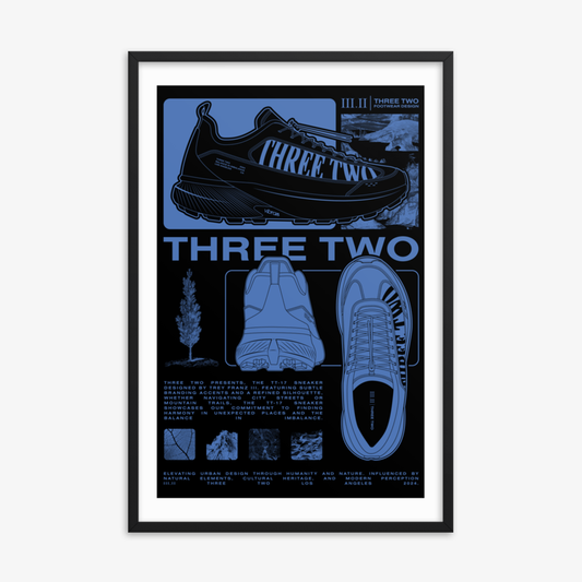 Three Two Footwear Design FW2024 Framed Poster - Slate Blue/Black
