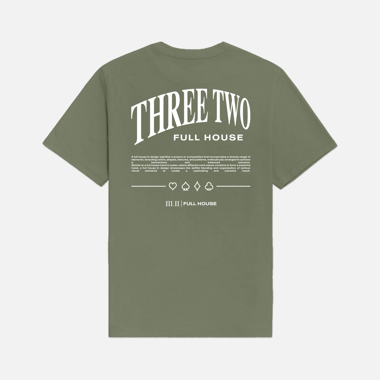 Three Two - Full House Collection T-Shirt - Moss Green / White