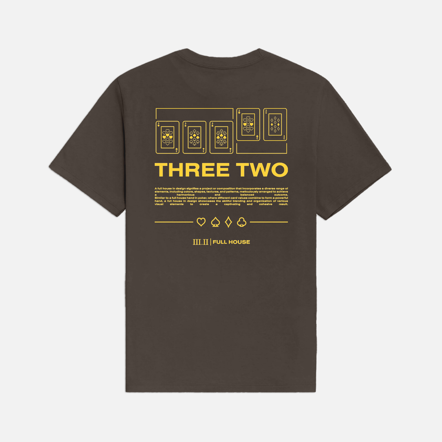 Three Two - Full House Cards T-Shirt - Dark Brown / Yellow