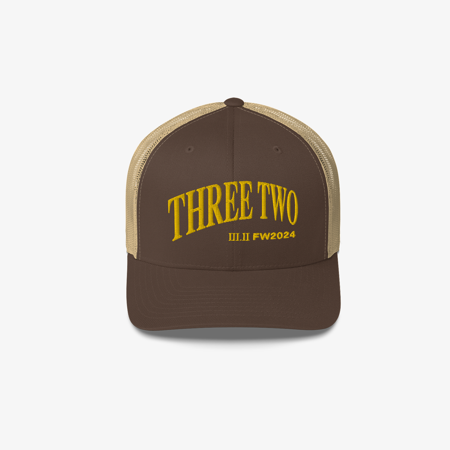 Three Two FW2024 Trucker Hat - Brown/Tan/Yellow