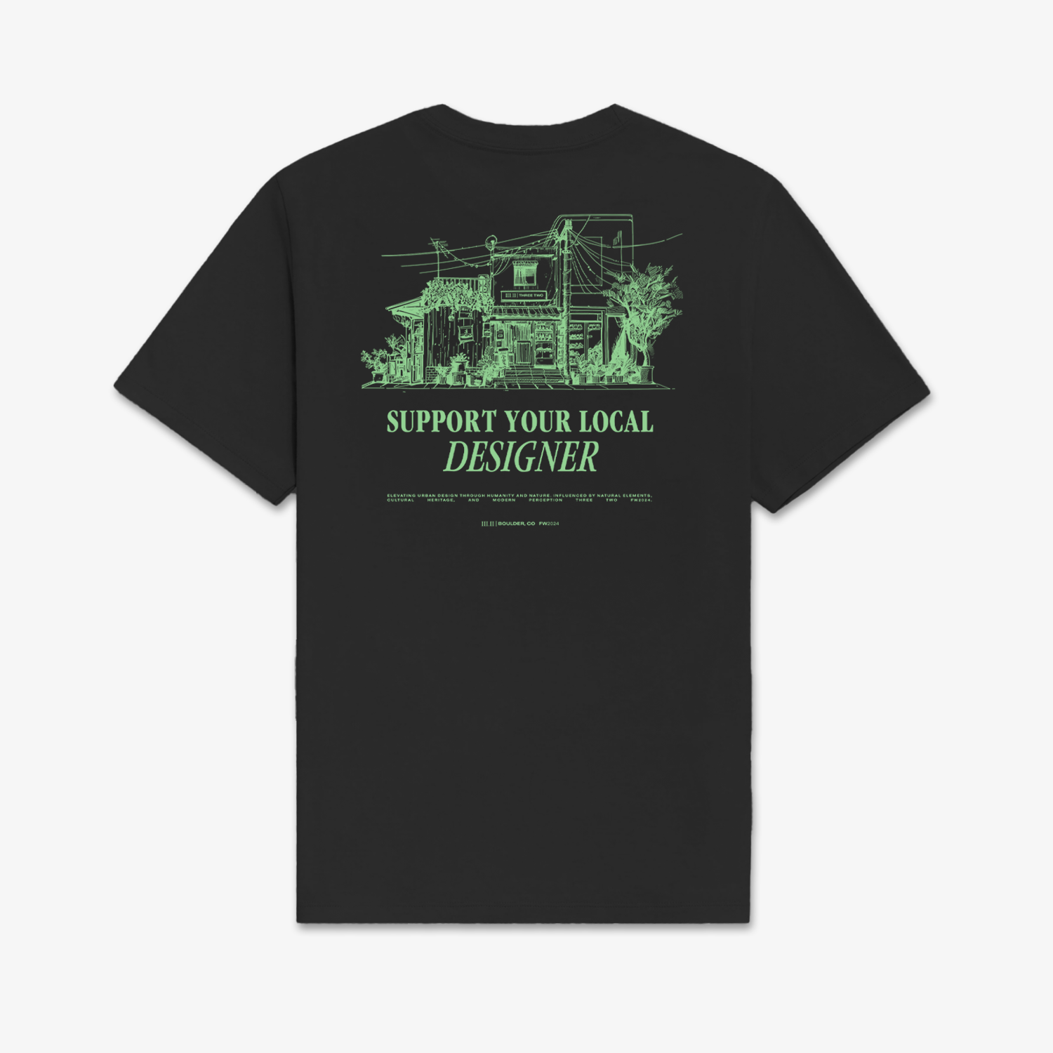 Three Two Support Your Local Designer Oversized T-Shirt - Charcoal Grey/Mint